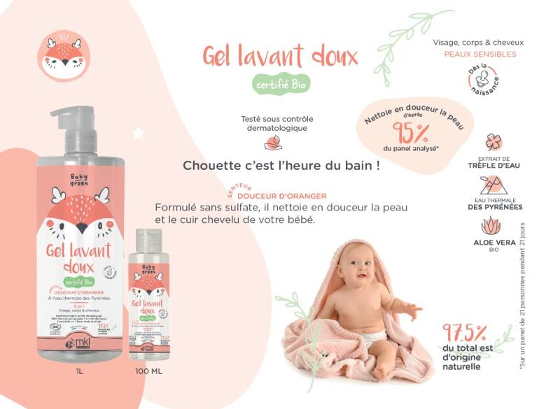 Ce lavant certifié bio douceur d'oranger est spécialement conçu pour les peaux délicates des bébés et des enfants.